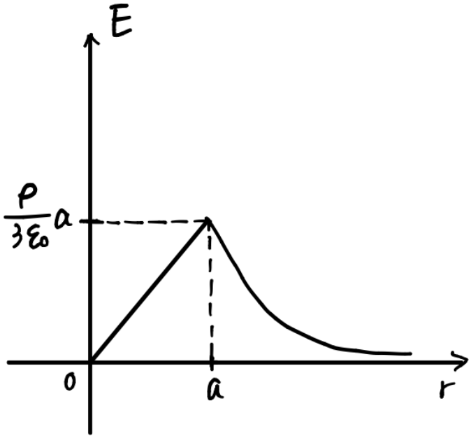 の点における電界の大きさ を求め, に対する変化の概略をグラフに示せ。 -