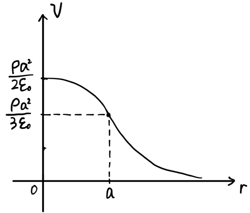 の点における電位 を求め, に対する変化の概略をグラフに示せ。ただし,無限遠を電位の基準 とする。 -