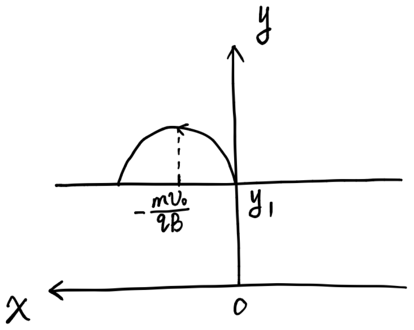 ③ 領域 II 内での荷電粒子の軌跡の概略図を描け。ただし,荷電粒子が領域 I と領域 II の境界に戻ってくるまでの軌跡でよい。