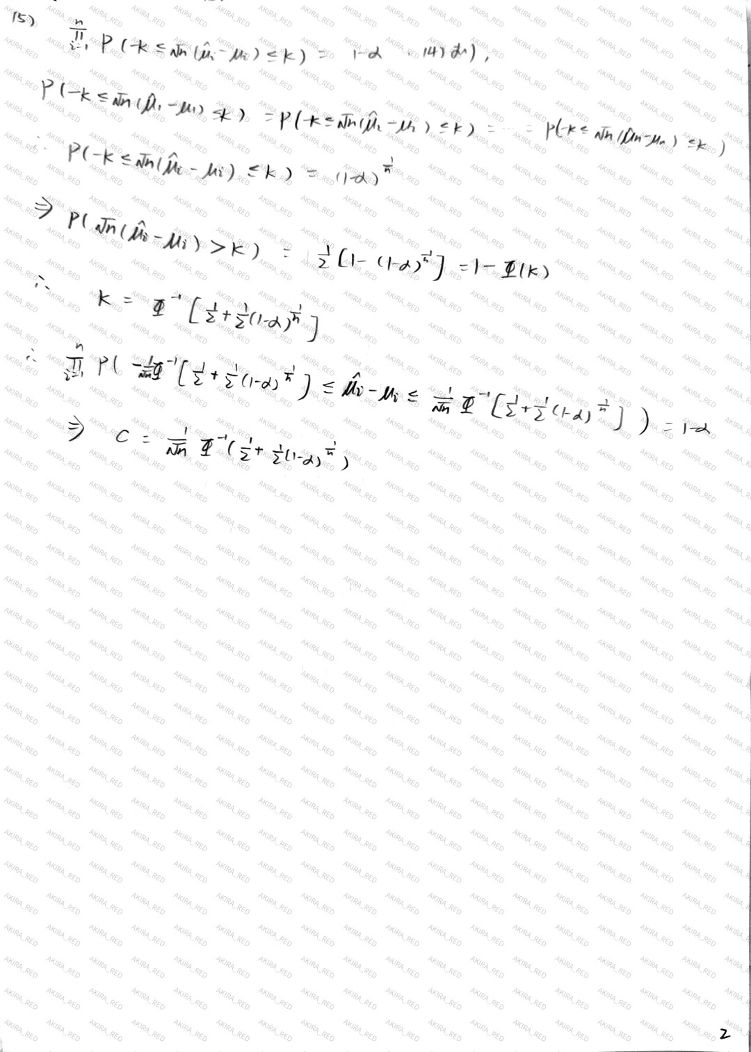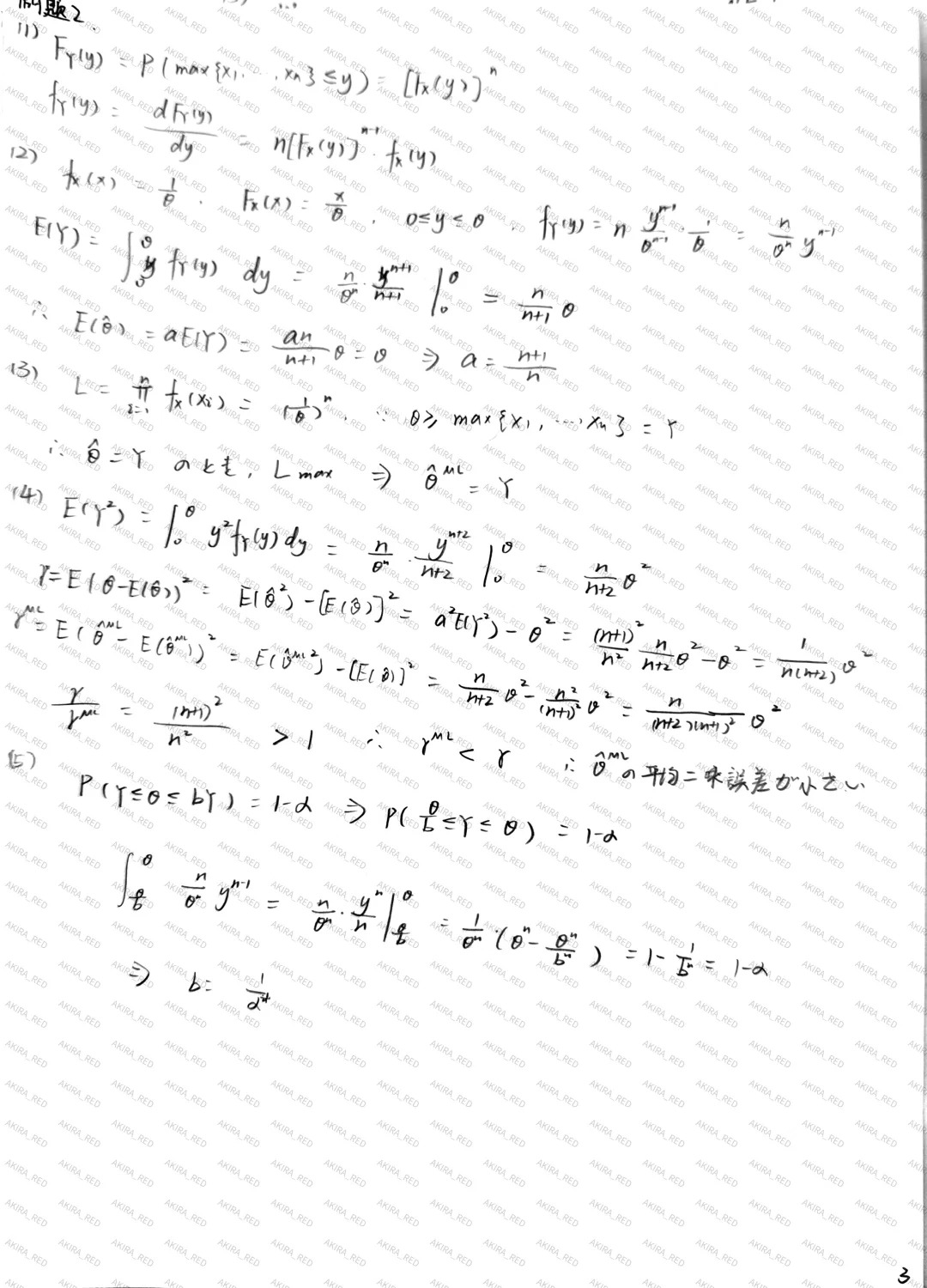 京都大学 情報学研究科 システム科学専攻 2020年8月実施 専門科目 確率統計