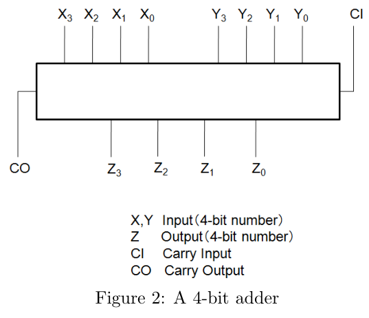 (2) Design the 4-bit adder shown in Figure 2 using the adders designed in question (1) with additional AND, OR and NOT gates.