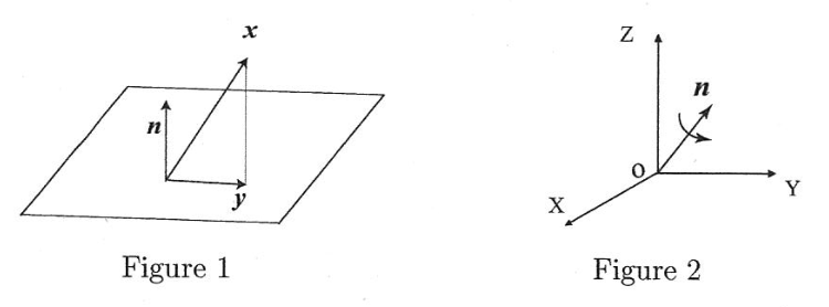 (3) As Figure 1 shows, a vector is vertically projected to a vector on a plane whose normal vector is a unit vector . If the vector is described as , show that the matrix becomes .
